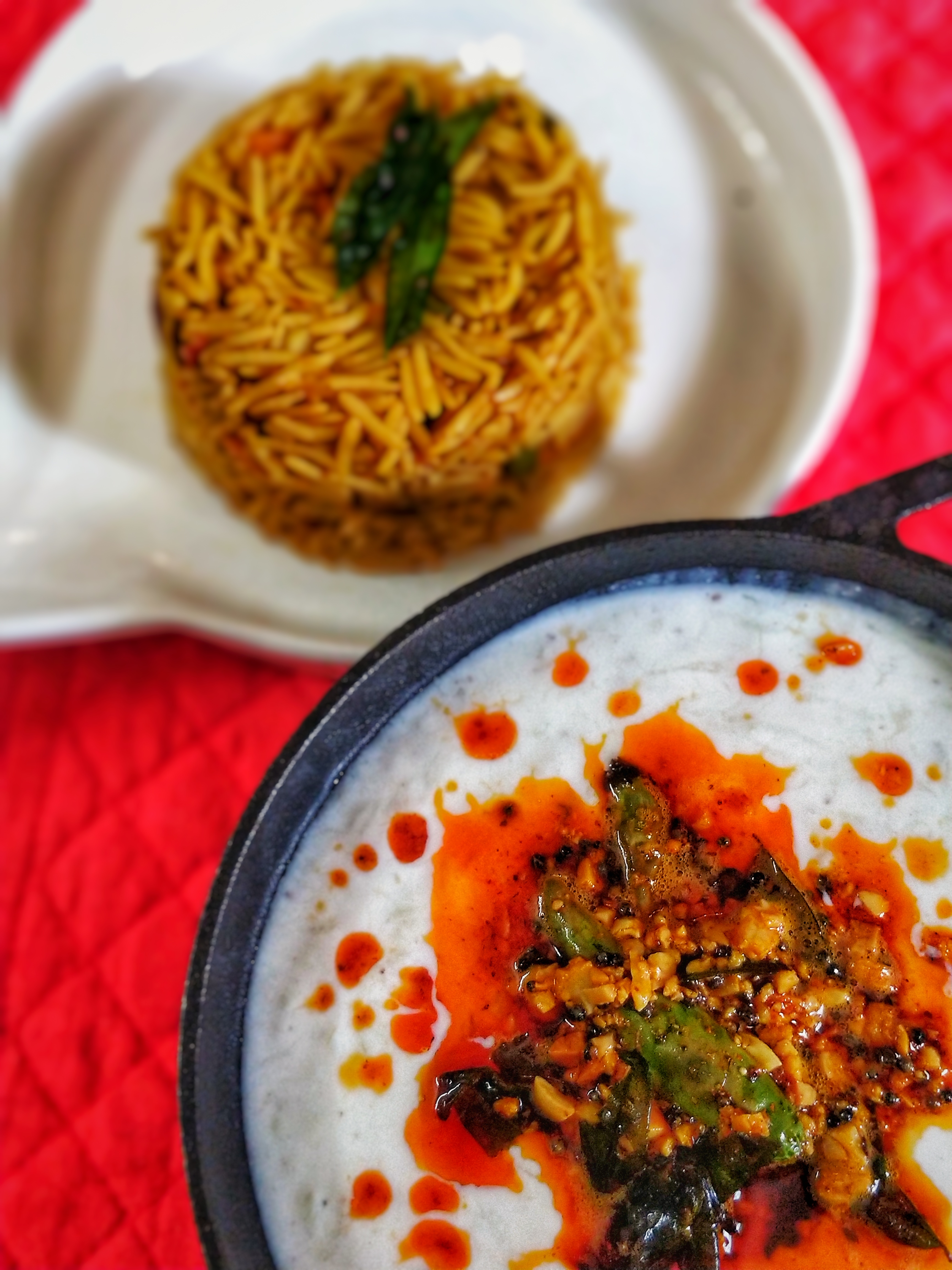The term chutney refers to a number of sauces (or the dry base for such sauces) native to India, forming an integral part of Indian cuisine. Chutneys may be realized in such forms as a tomato relish , a ground peanut garnish, or a dahi (yogurt)spicy coconut, spicy onion or mint dipping sauce . Chutneys that contrast in taste and colour can be served together—a favourite combination being a green mint and chilli chutney with a contrasting sweet brown tamarind and date chutney.